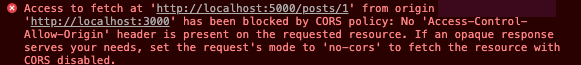 서로 다른 도메인 또는 포트로 리소스를 요청할 때 CORS를 설정하지 않으면 에러가 발생한다.